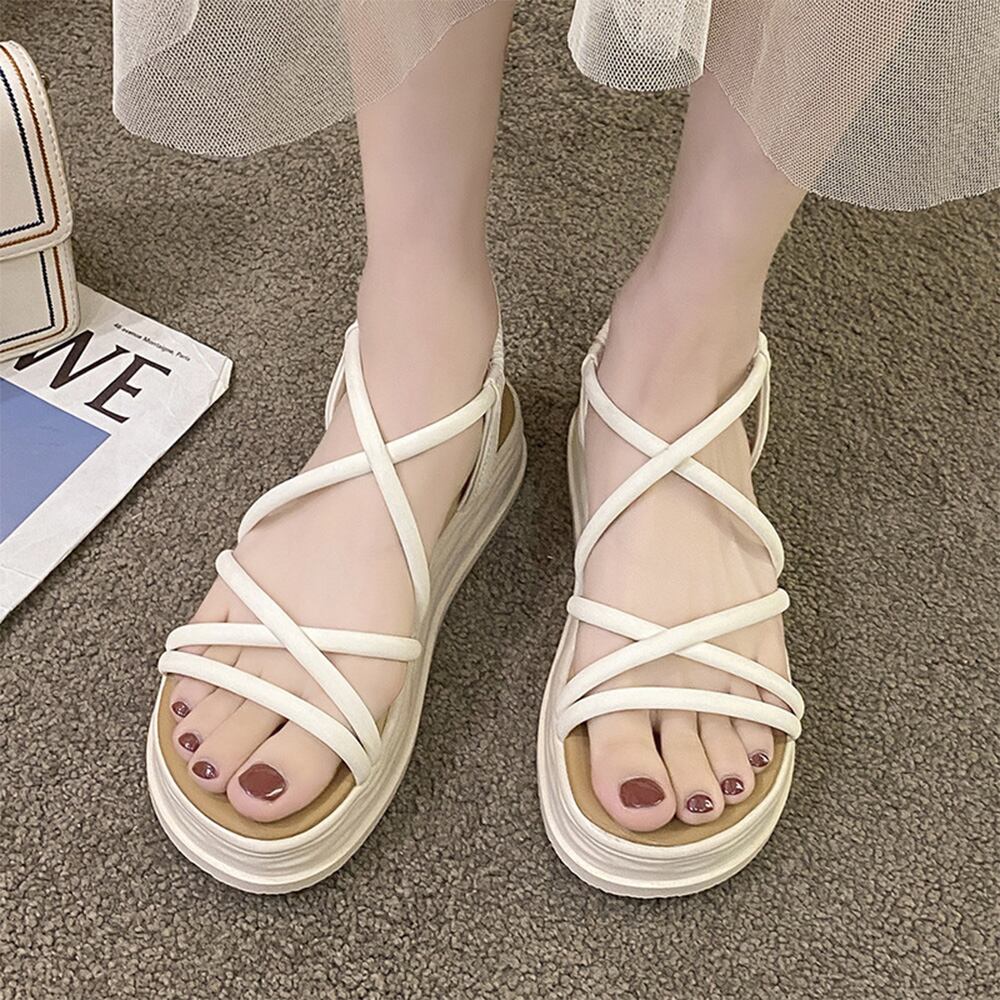ブラックとアイボリーの2色展開、シンプルで使い勝手の良い厚底サンダルです。