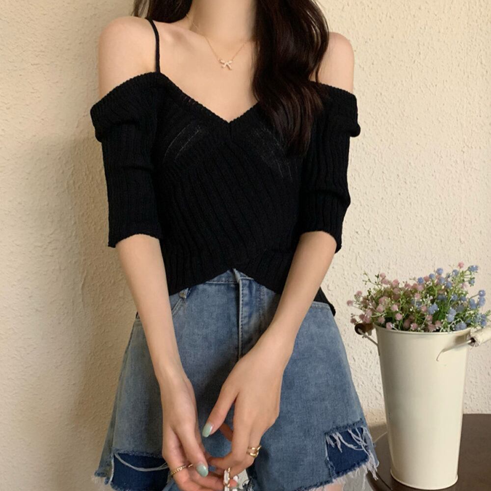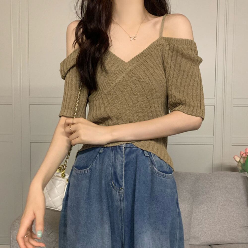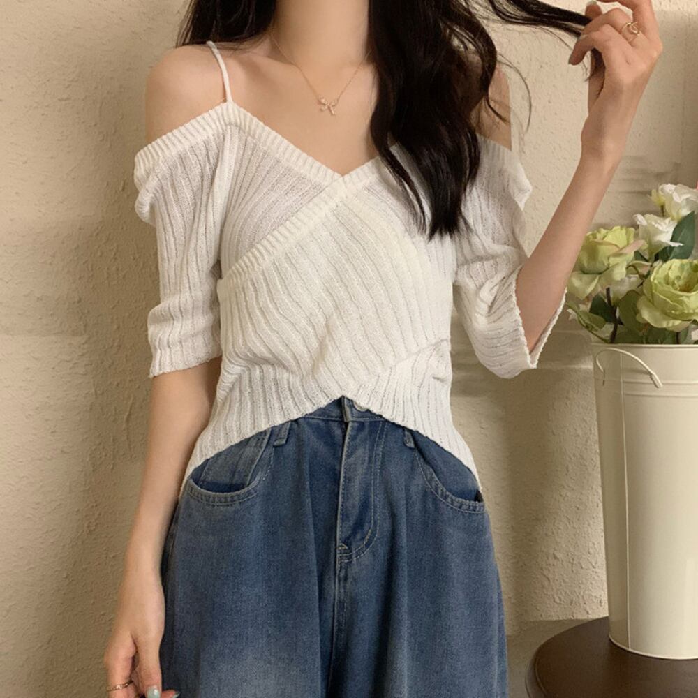デコルテラインを綺麗に見せるニットトップス