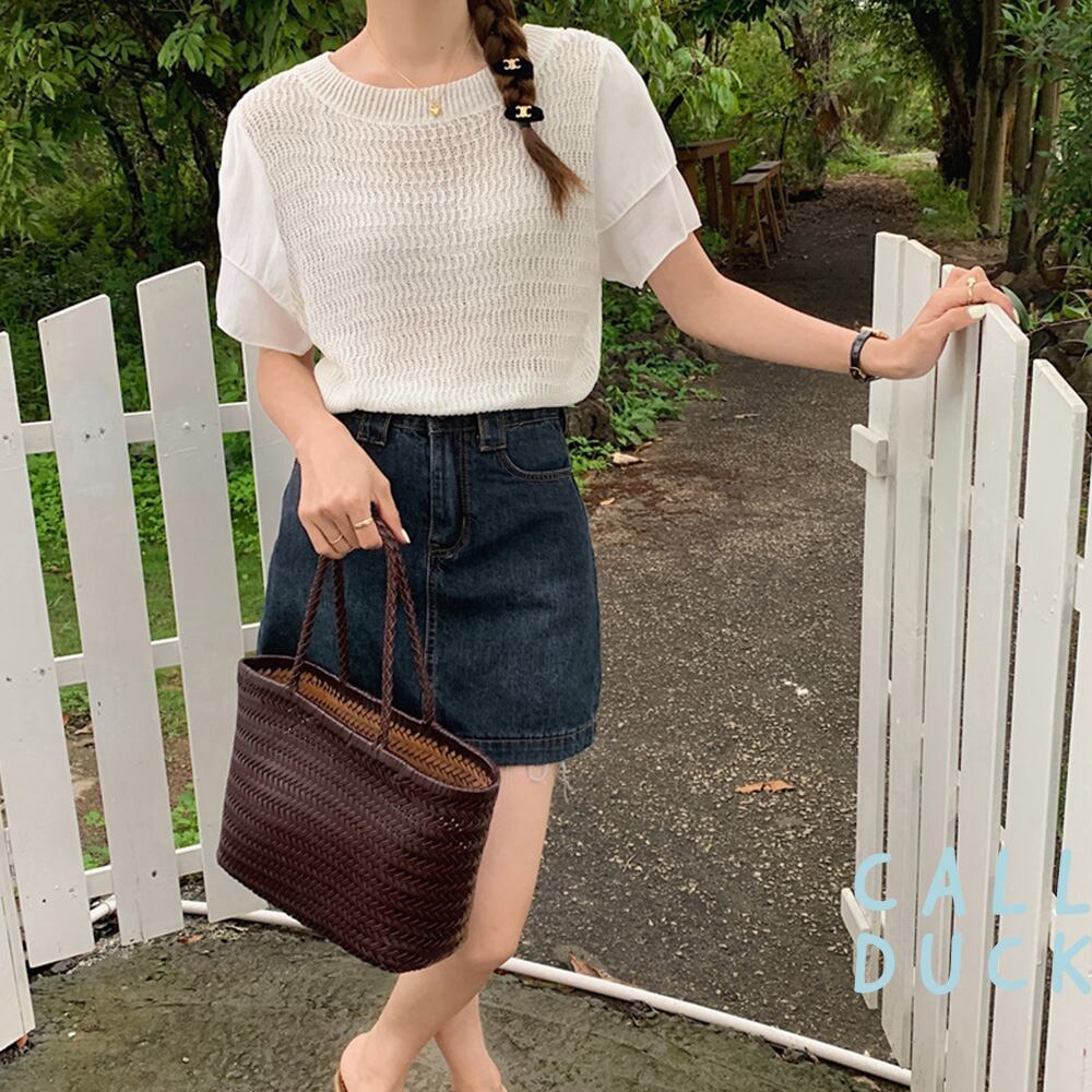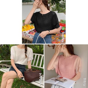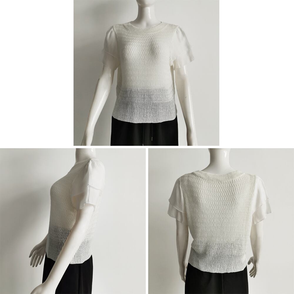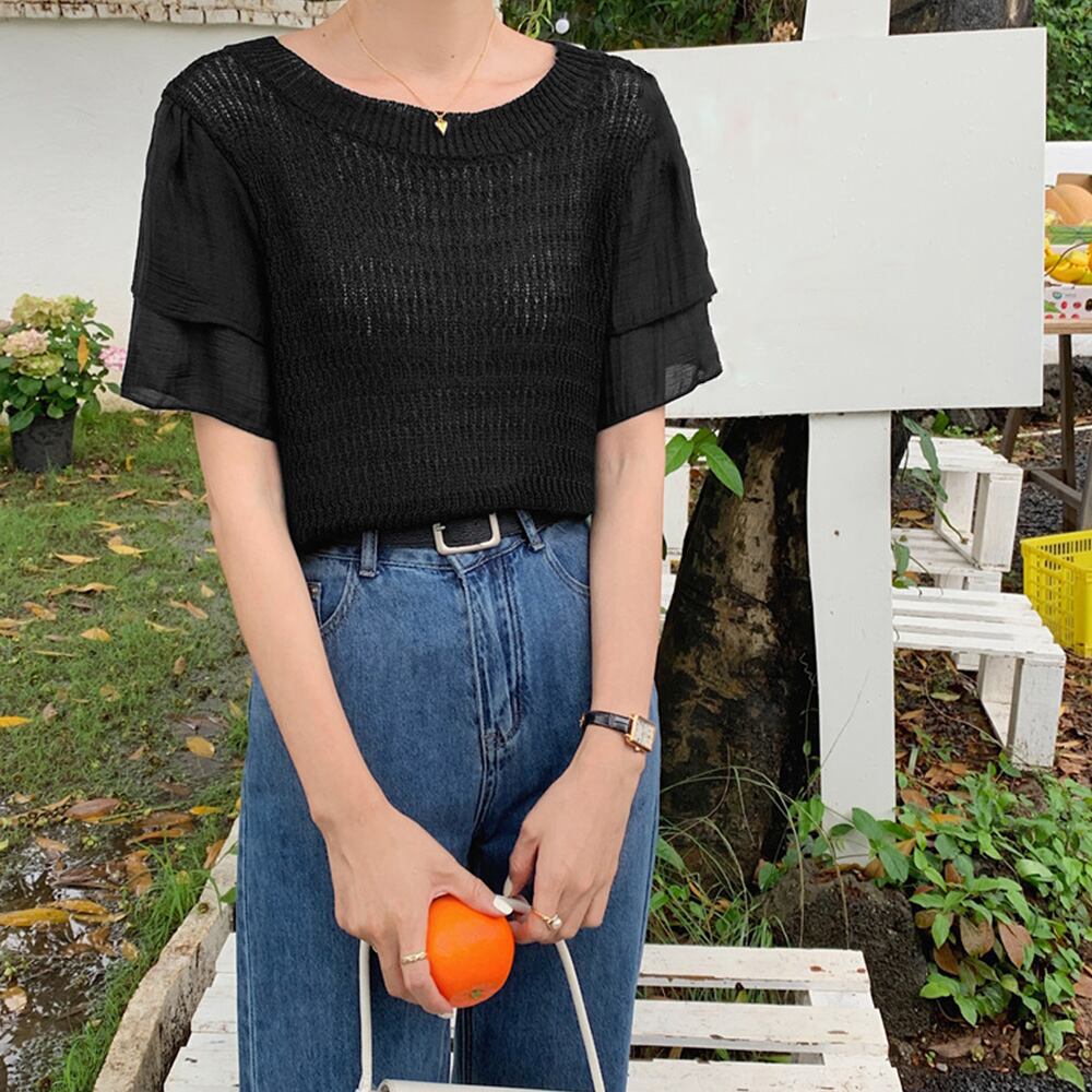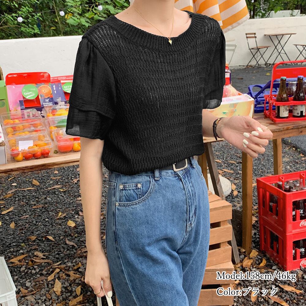 二重になっている袖のデザインのニットプルオーバー