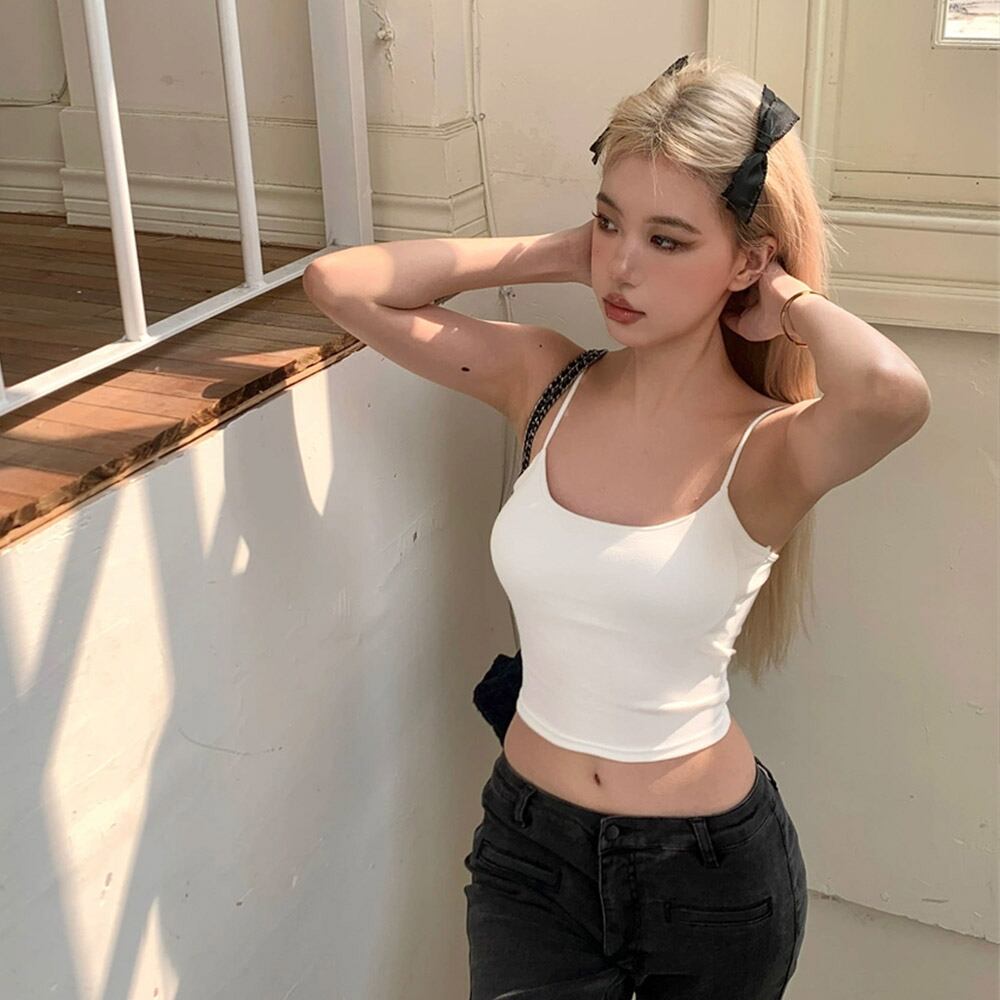 ミニマルなデザインで、モードな印象が引き立つカップ付きキャミソール