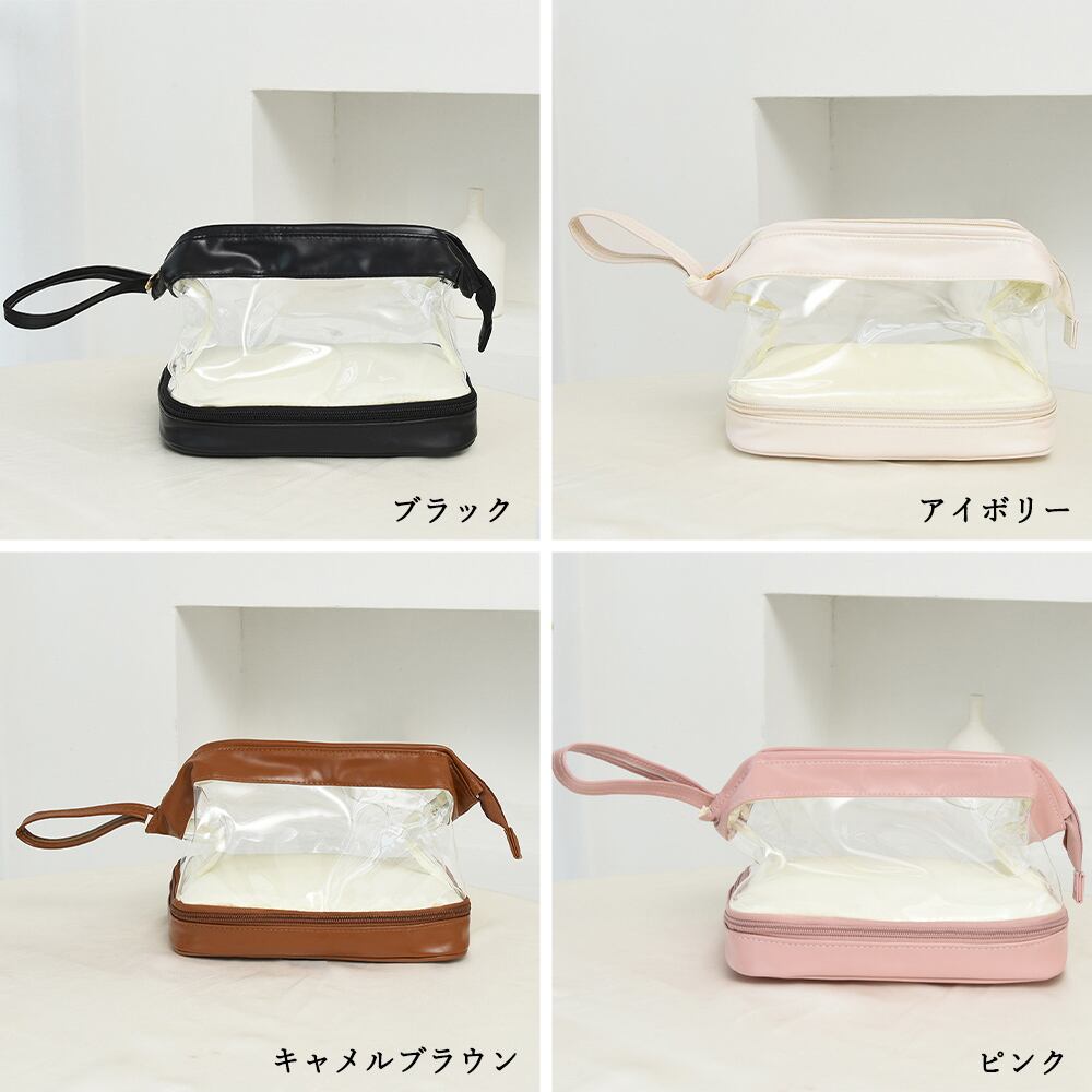 ファスナー開閉式で物の出し入れは簡単楽ちん、クリアPVC素材なので中身が一目瞭然で整理整頓しやすい