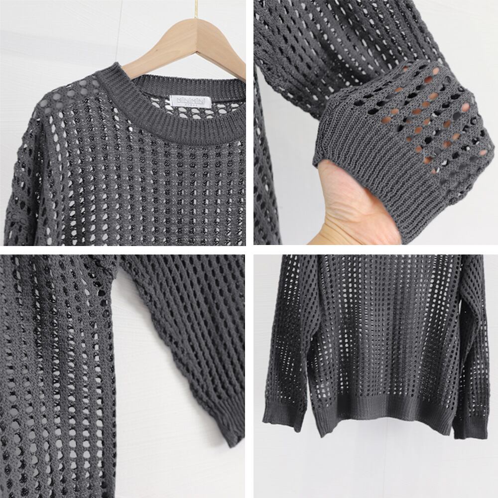 涼しげなメッシュ素材は通気性に優れている透かし編みニットです