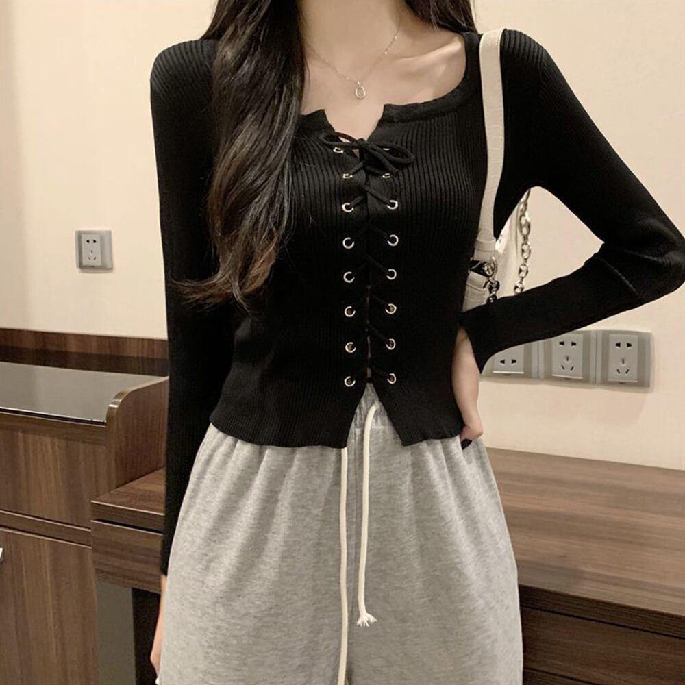 胸元のレースアップが大人っぽく演出してくれる