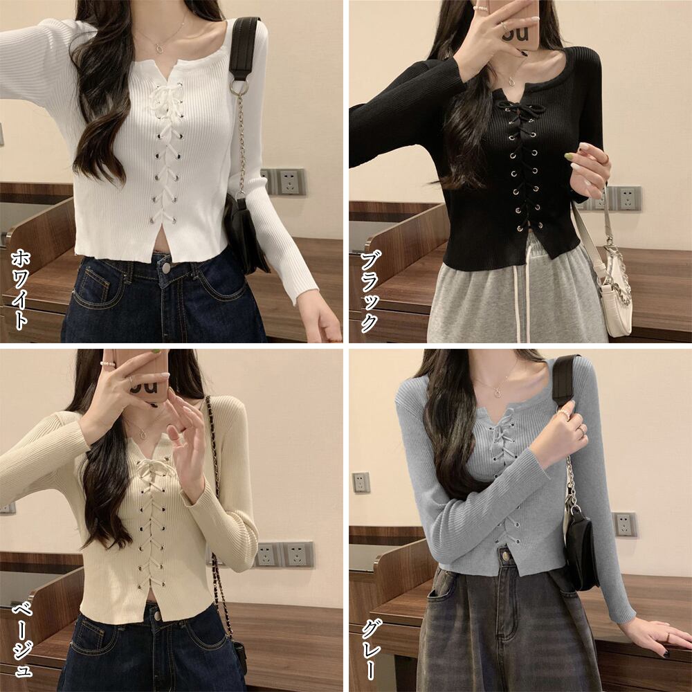 伸縮性がありやわらかい生地感でストレスフリーな着心地の長袖ニットトップス