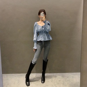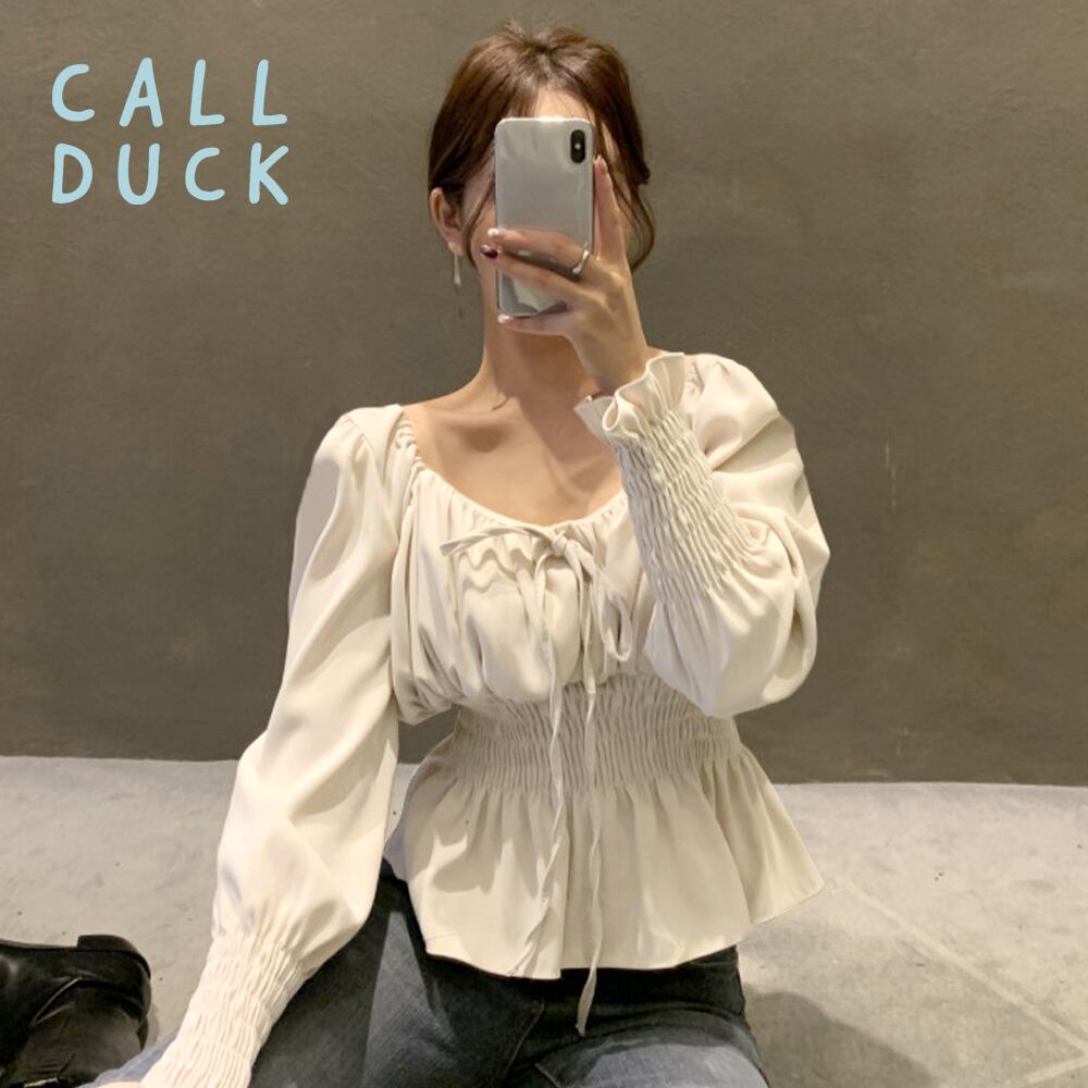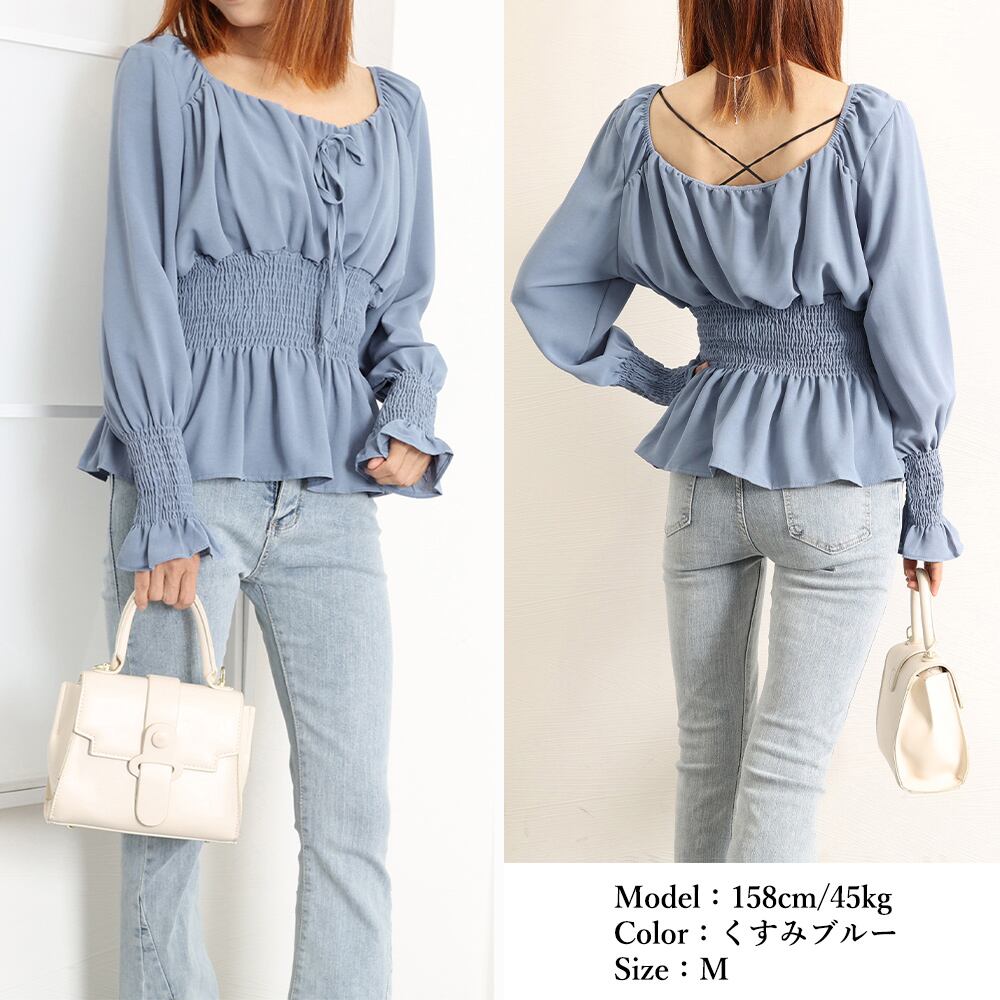ウエストと袖部分のシャーリングディテールが、美しいラインを強調し、ウエストのくびれを際立たせます