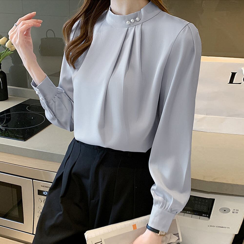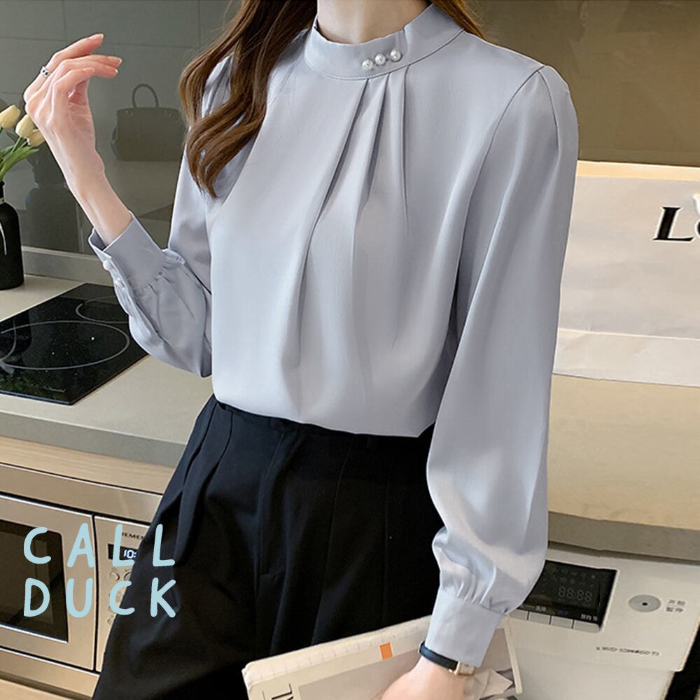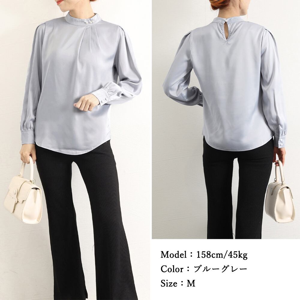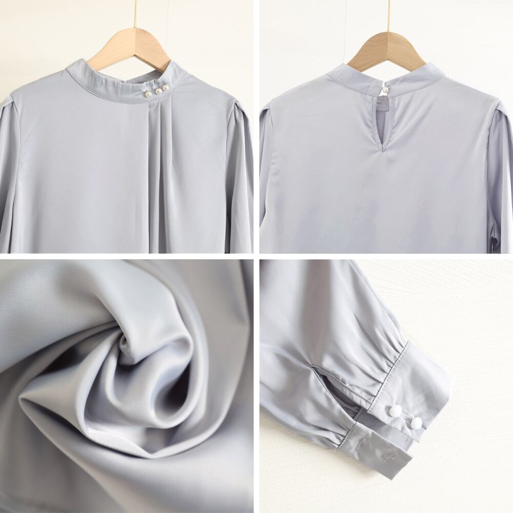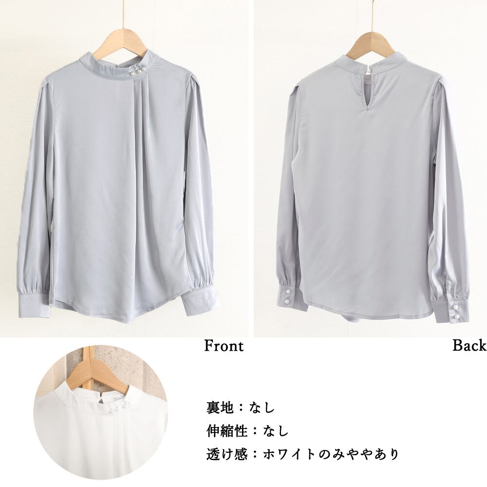 シンプルなコーディネートでもフェイクパールの存在感で上品かつ女性らしいスタイリングにキマるブラウス
