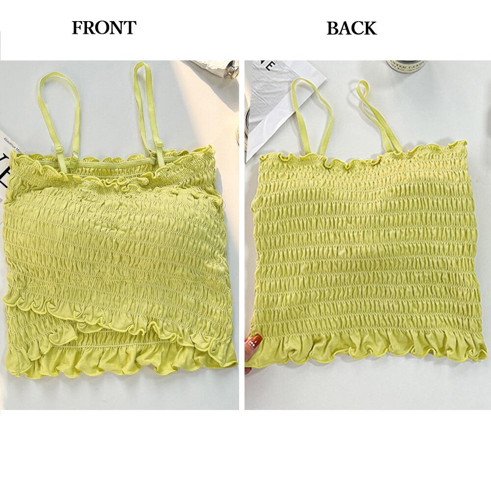 立体感のある細かなシャーリングがアクセントになったカップ付きインナーキャミ。