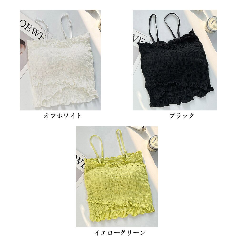 肩紐を付ければキャミソールとして、外せばベアトップ/チューブトップとしても使える2WAY仕様。