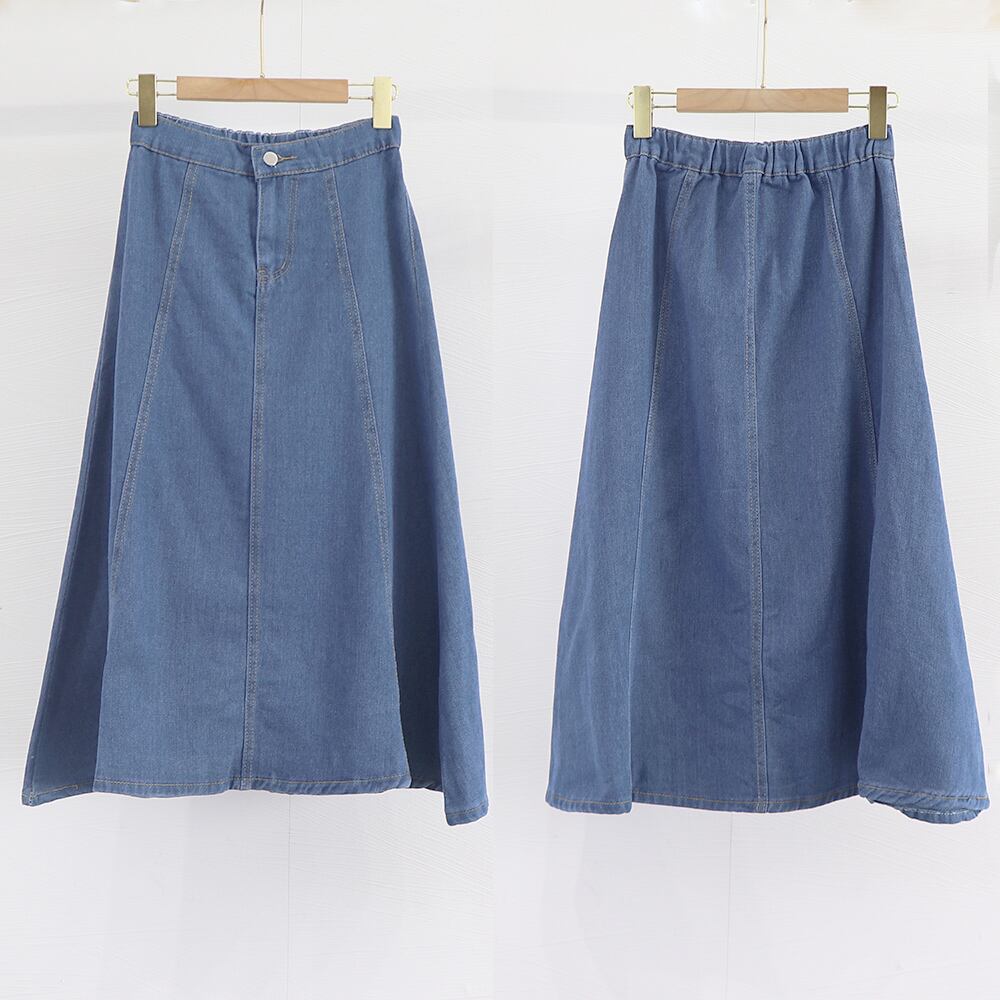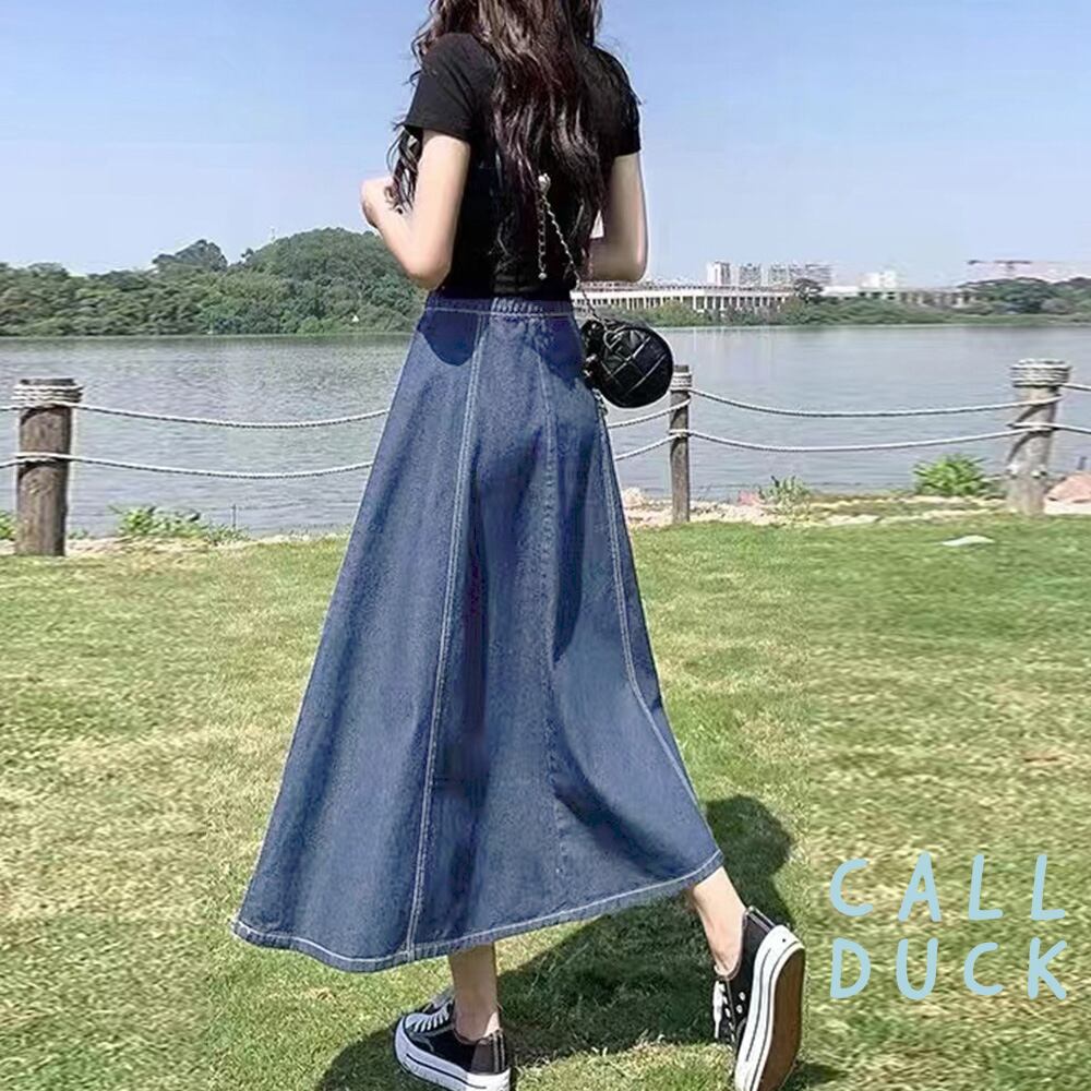 カジュアルコーデにもぴったりの長め丈のフレアデニムスカート