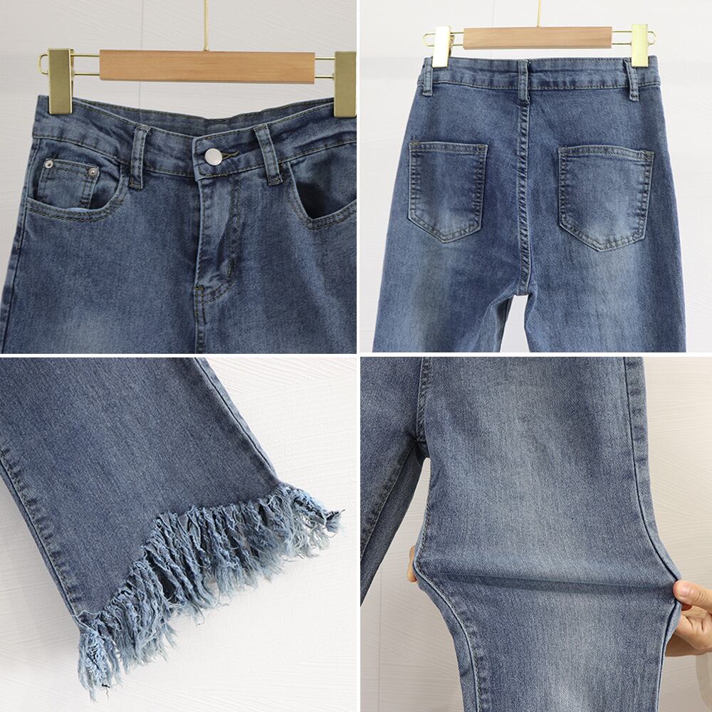 美脚を引き立てる魅力的な裾フリンジデニムフレアパンツ