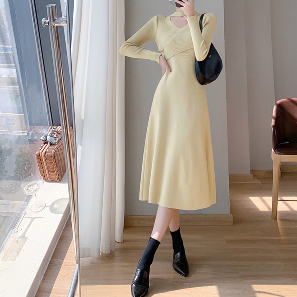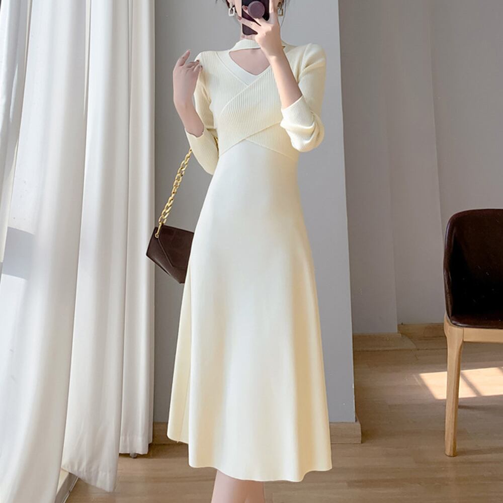 オフィスカジュアルからパーティーまで、多彩なシーンで活躍するニットワンピースです