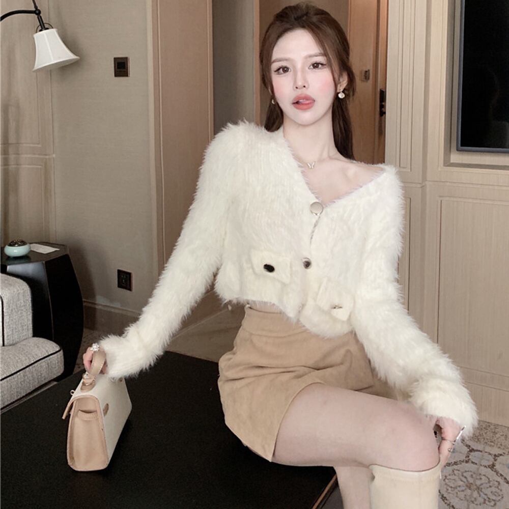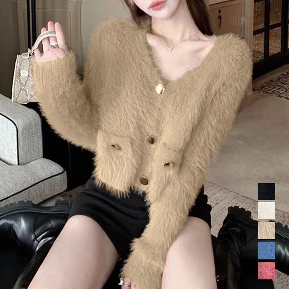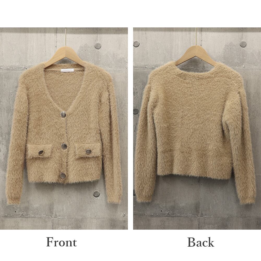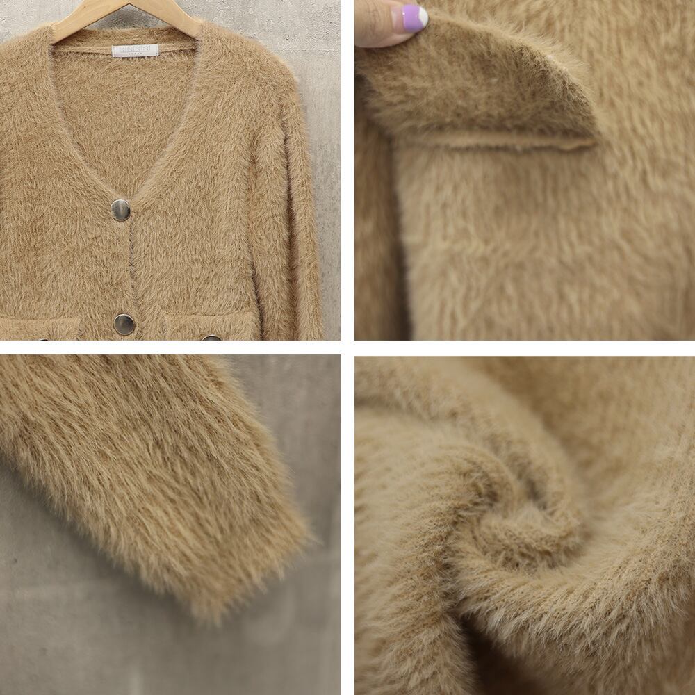 毛足の長いフェザーヤーンがふわふわしてて、見た目・着心地ともにフェミニンなムードたっぷり!