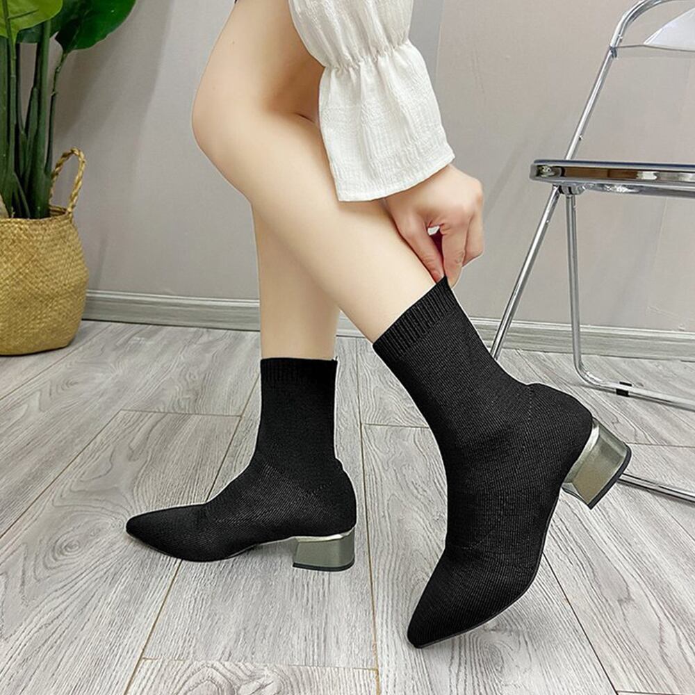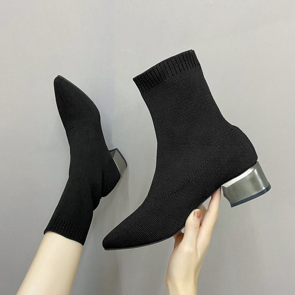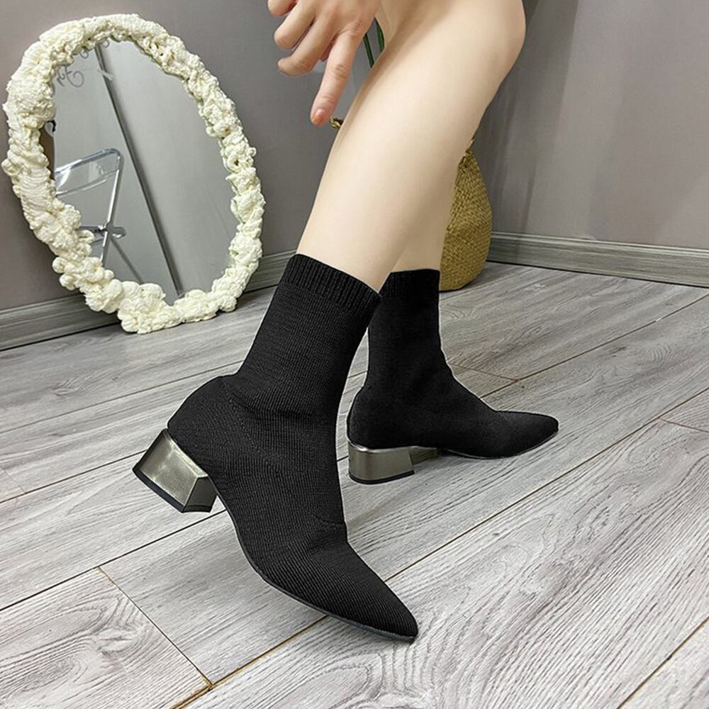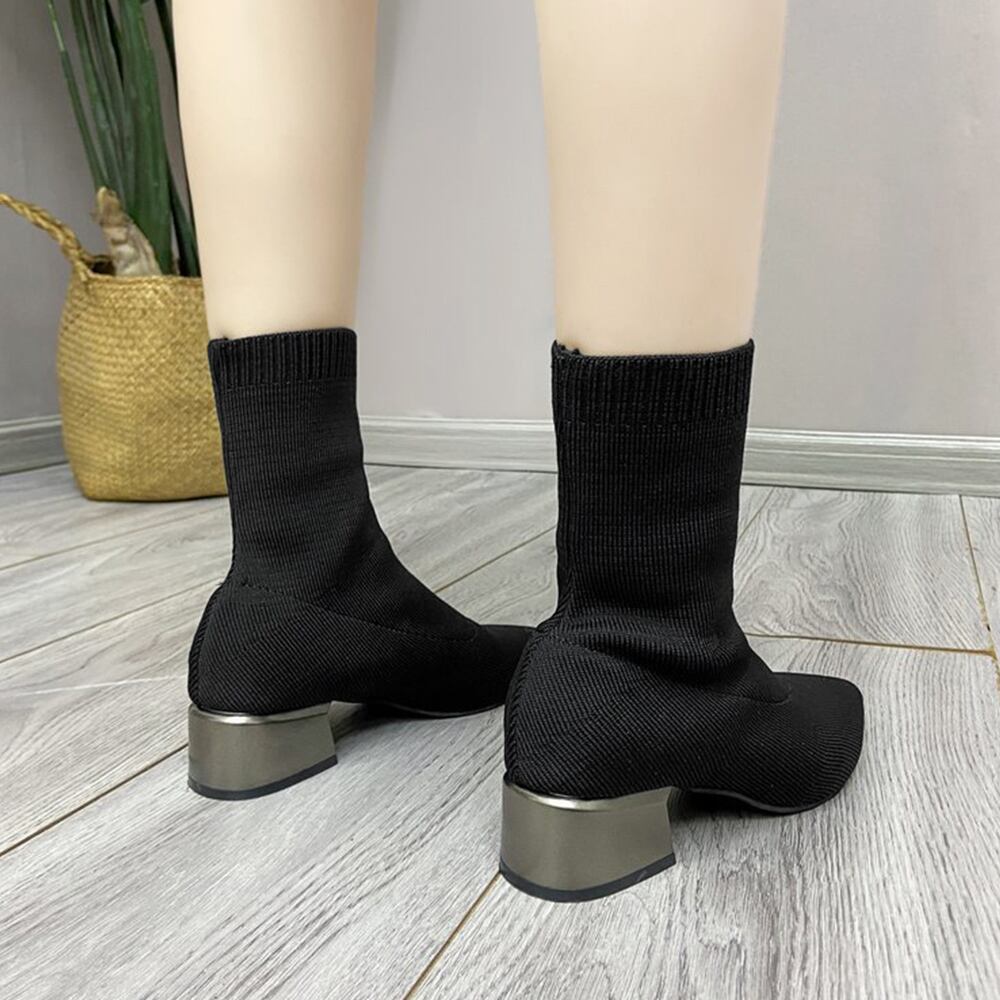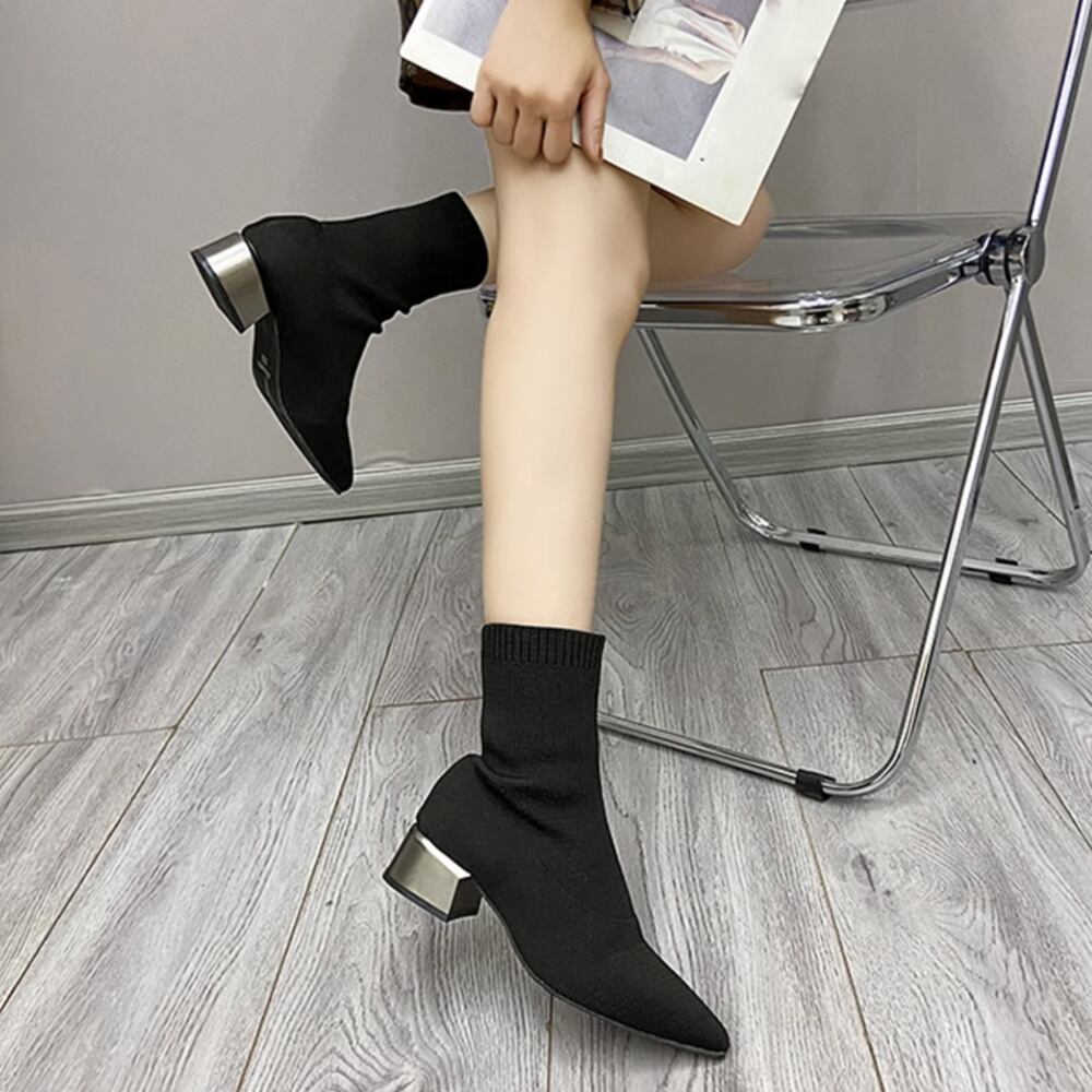 靴下を履く感覚でサッと脱ぎ履き可能、抜群のストレッチときれいなシルエットが魅力的な韓国DESIGNのソックス風ブーツ