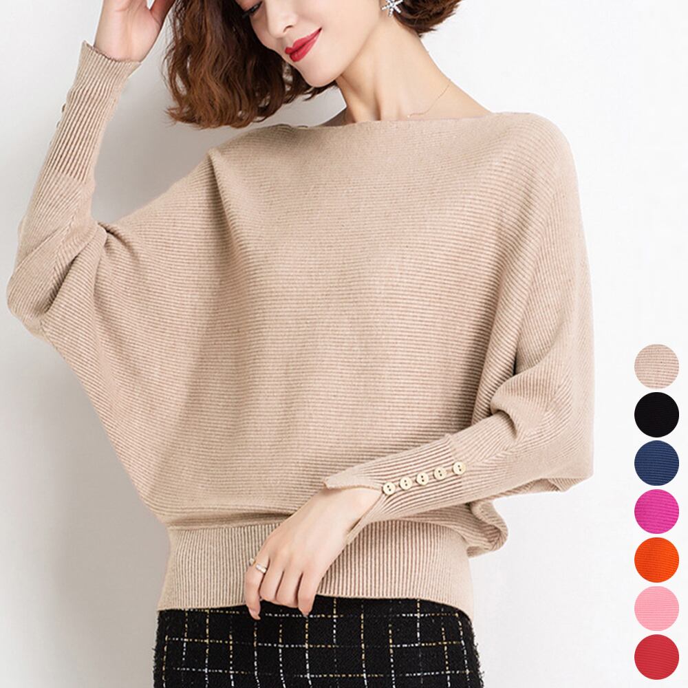 顔周りがスッキリ見えるボートネックと横リブが洗練された大人の女性にピッタリ
