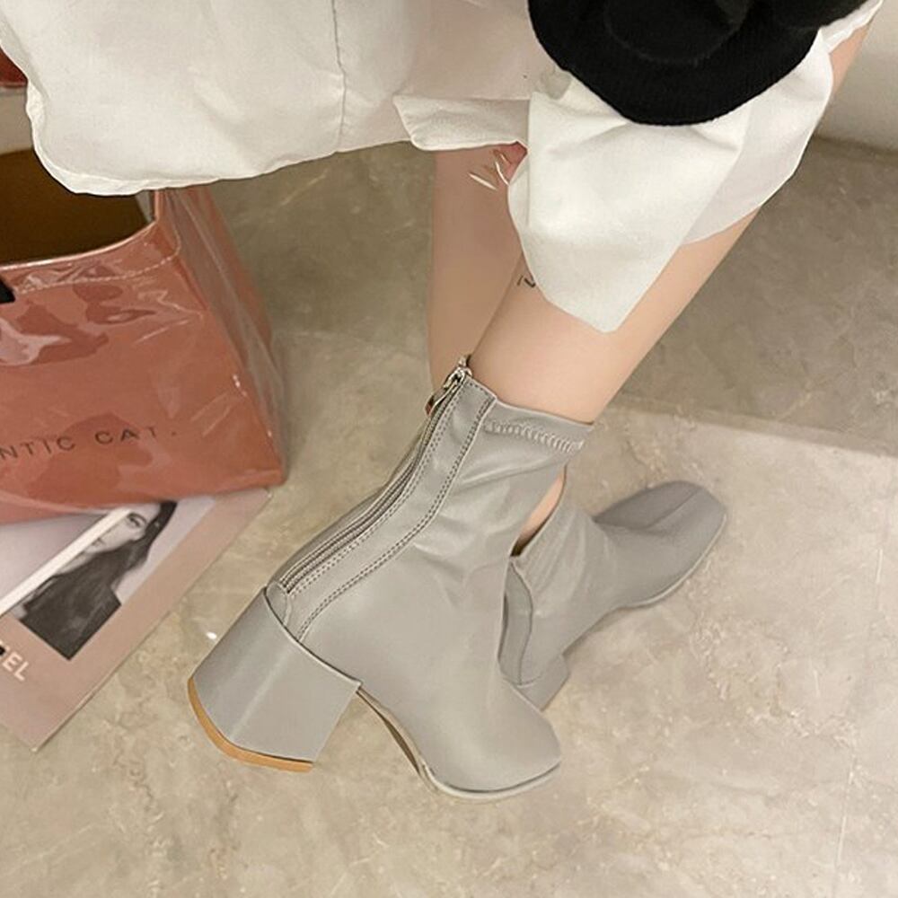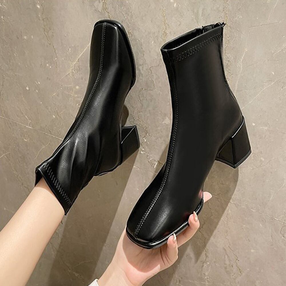 ベーシックなルックスに、スクエアトゥがエッジを利かせて足元をスッキリと見せてくれるショートブーツ