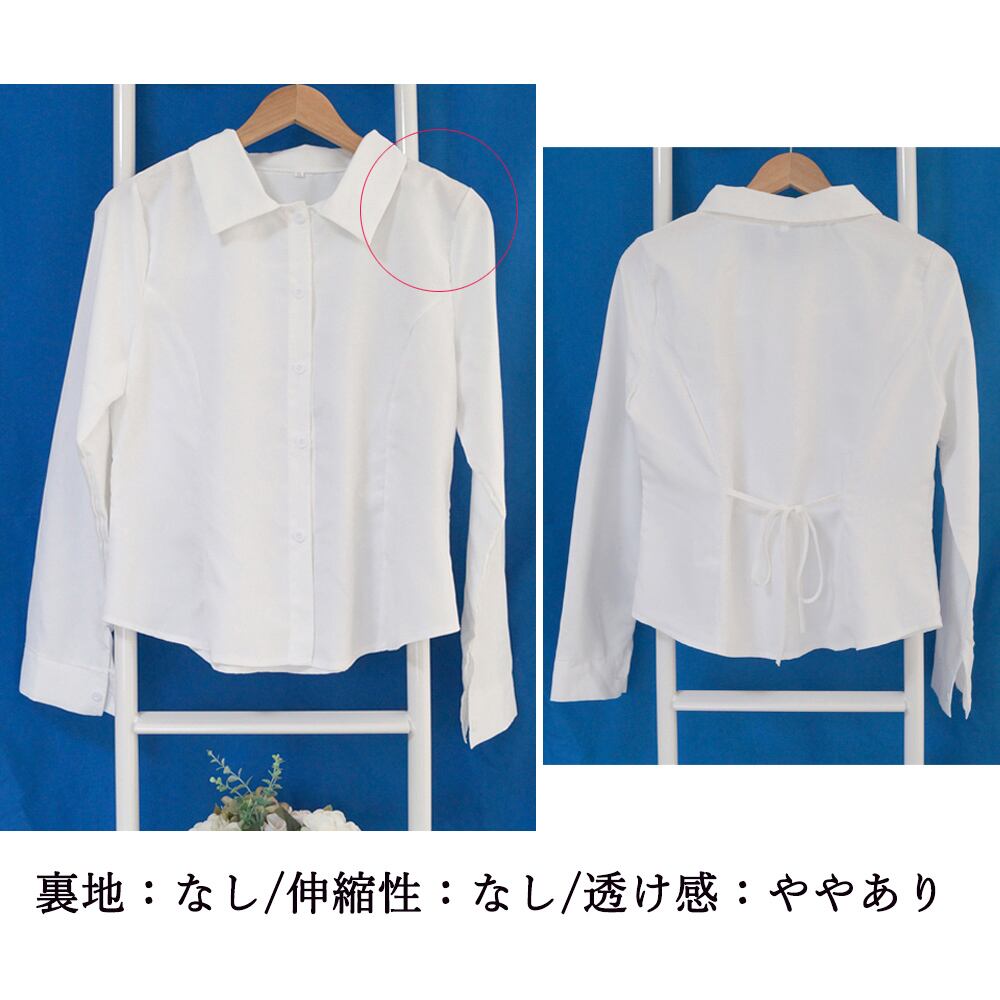 バックスタイルはリボンで調節できる長袖シャツブラウス