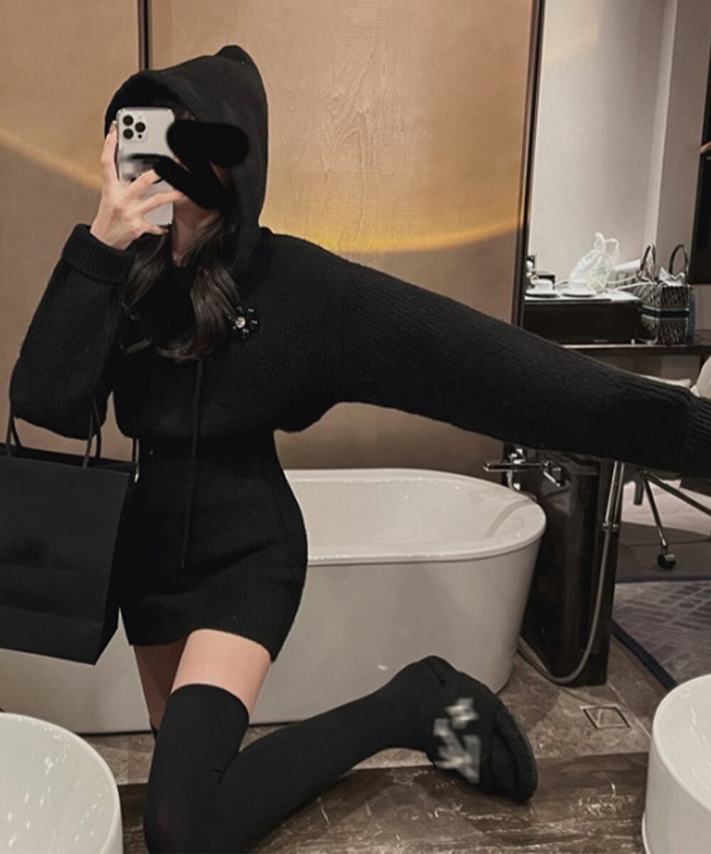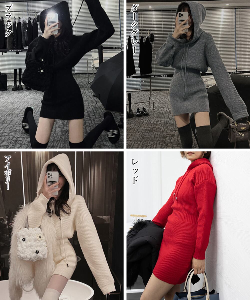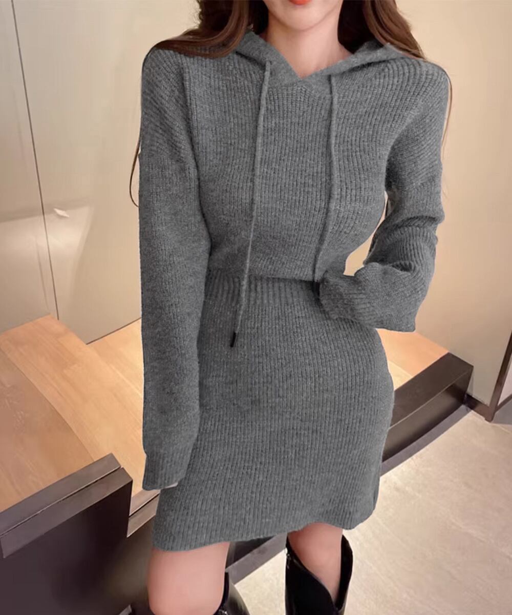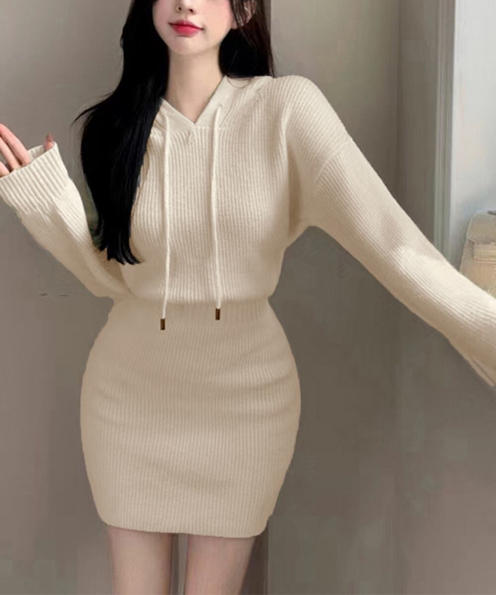 シーズンライクな色合いにセクシーさと女性らしさを両立したお洒落な韓国チックショート丈ニットワンピース