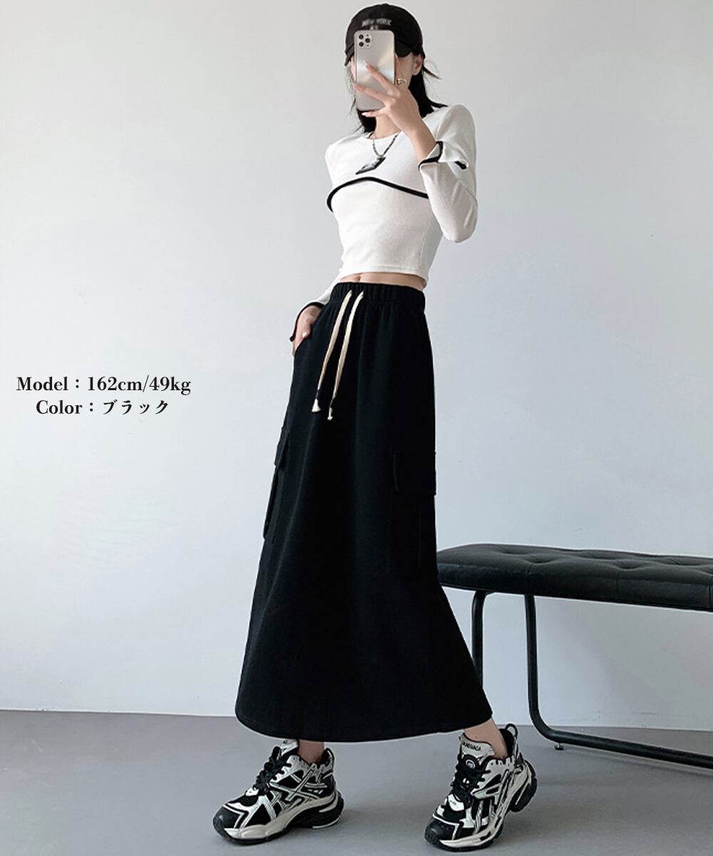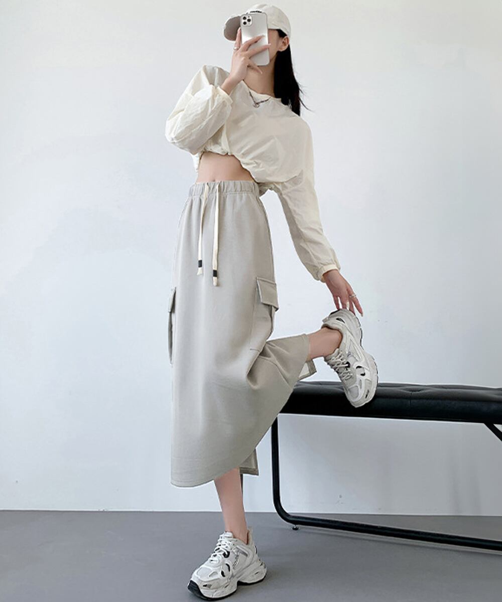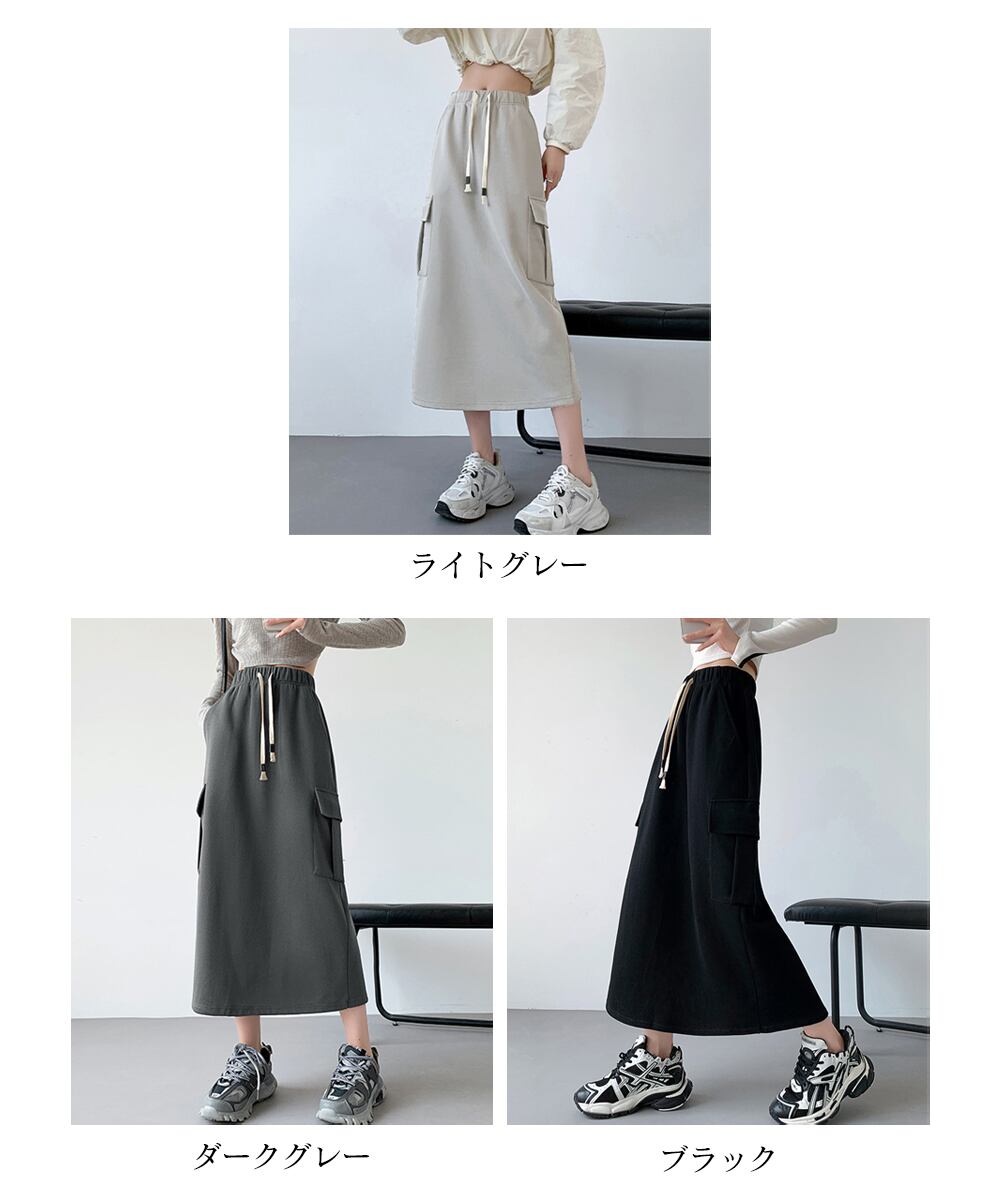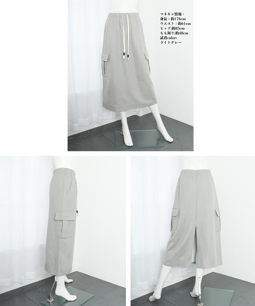 程良い丈感が魅力のミモレ丈のワークスカートです。