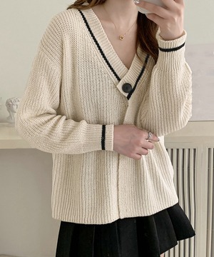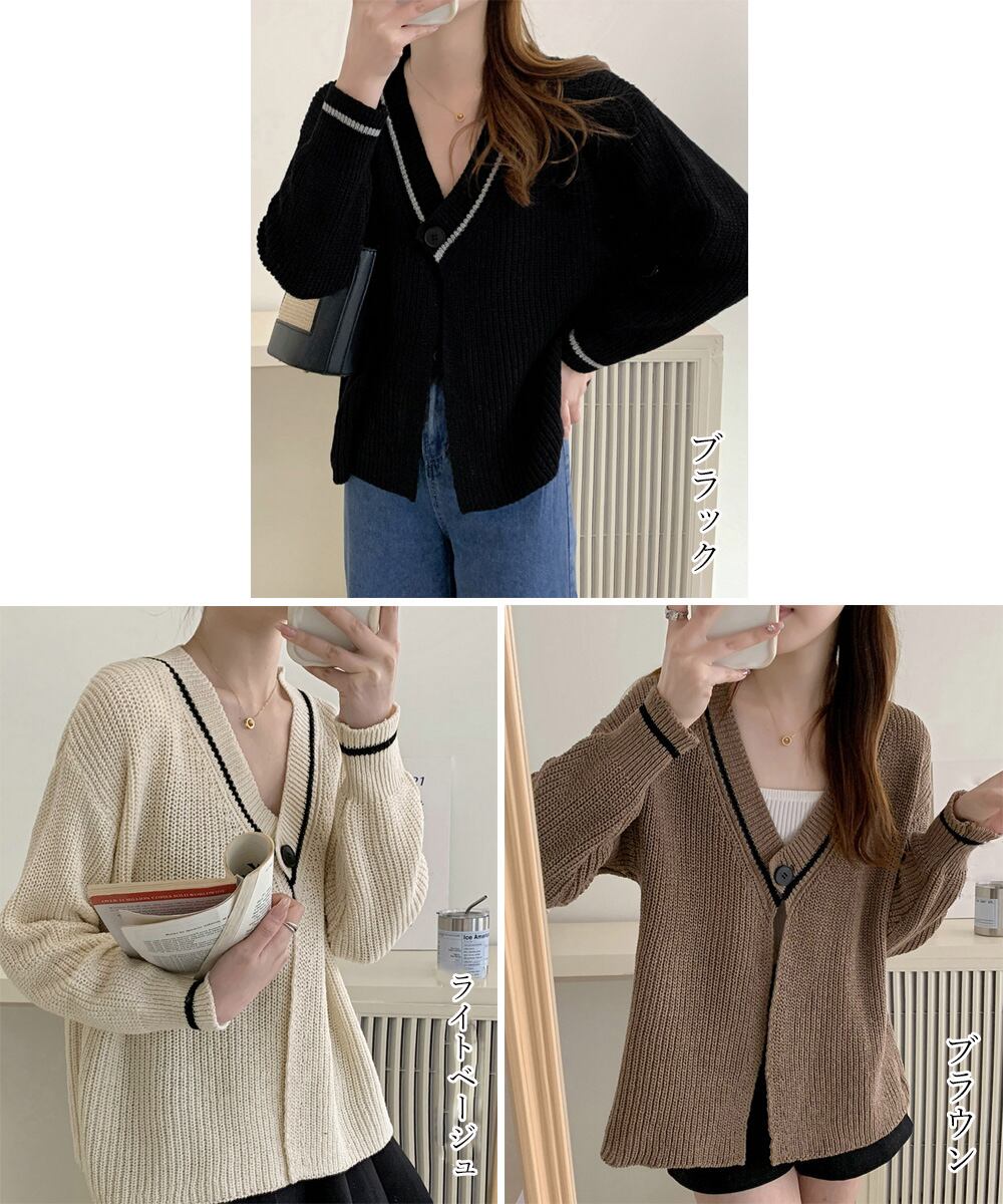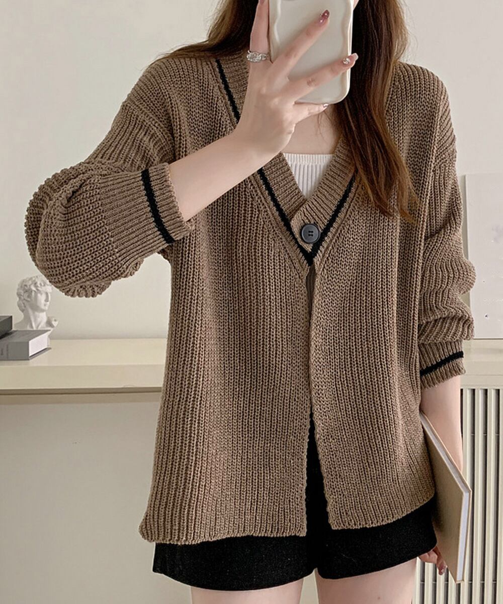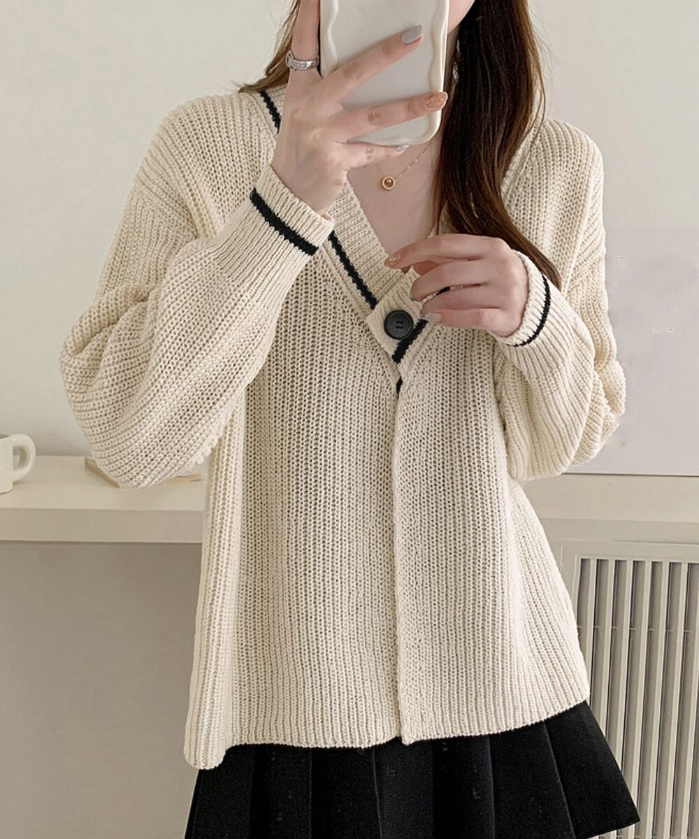 一つボタン仕様でさっと気軽に羽織れるニットカーディガン