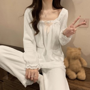 ゆったりサイジングデザインのシンプル無地仕様にワンポイントのリボンがとてもキュート、清楚で可憐な乙女をさり気なく演出