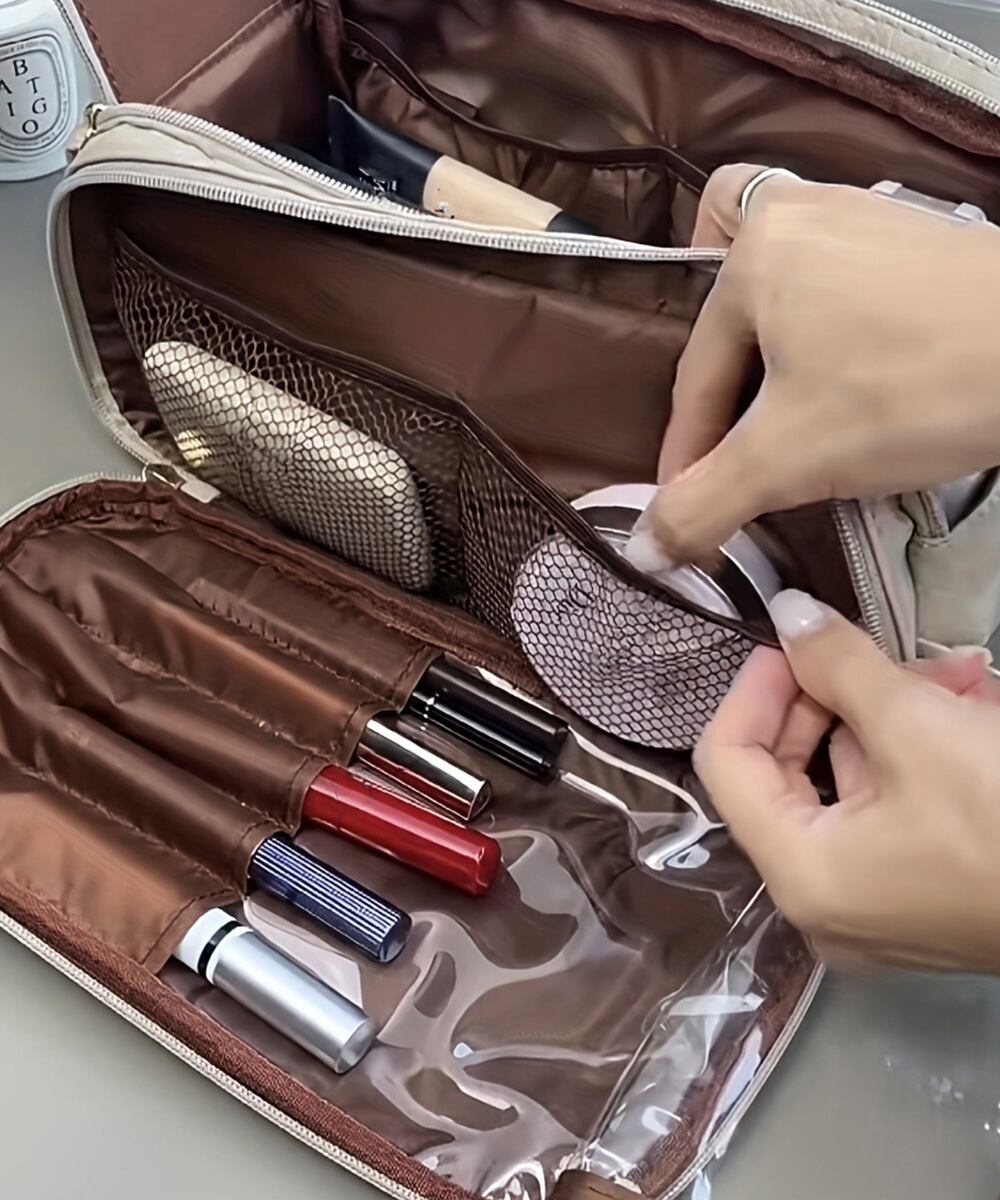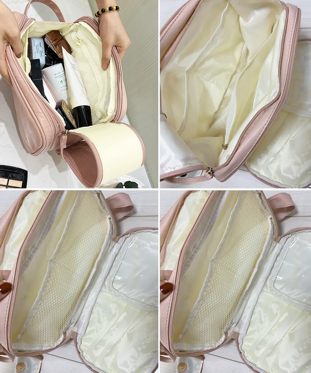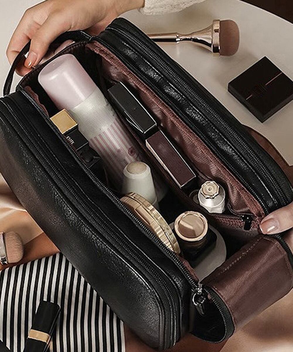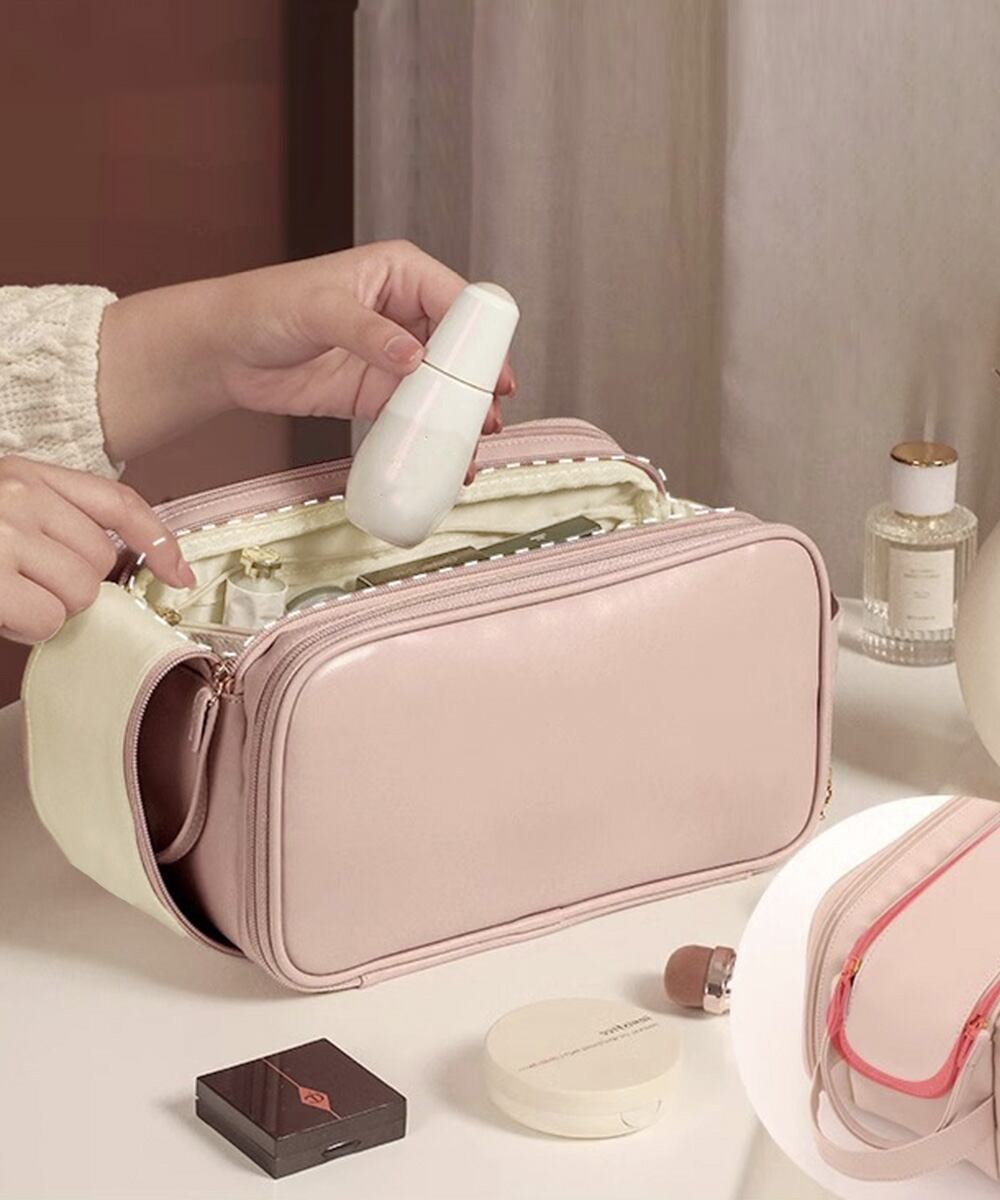 メイク道具一式がたっぷり収納できる持ち運びトラベルコスメポーチ