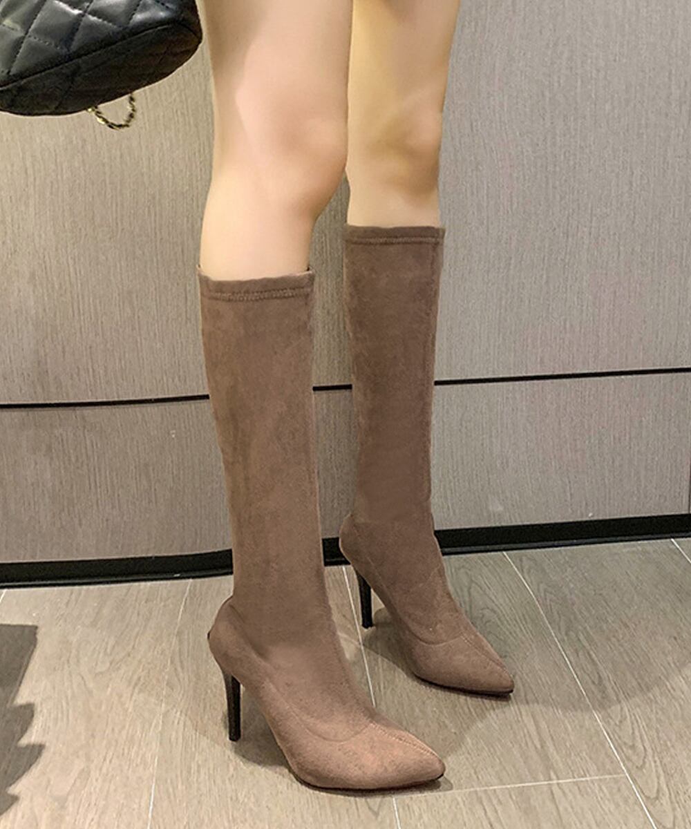 柔らかいスエード調素材で、着脱も簡単なニーハイブーツ。